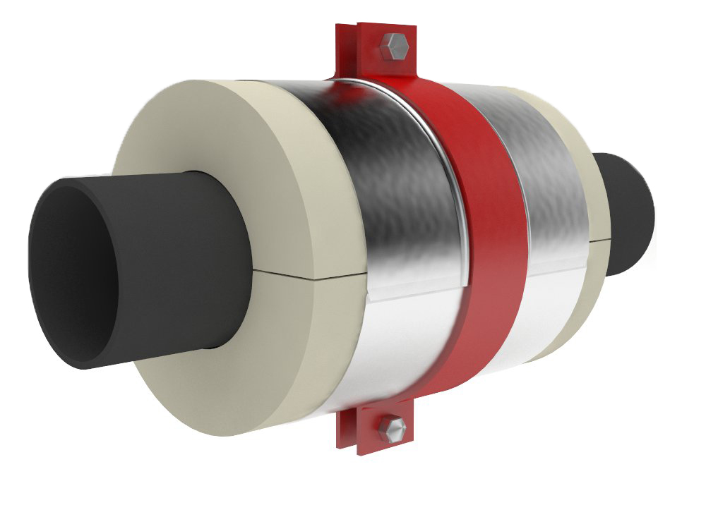 Calcium Silicate insulation extends 1″ beyond the galvanized sheet metal jacket providing for an easier wet lag butt joint with the pipe insulation.